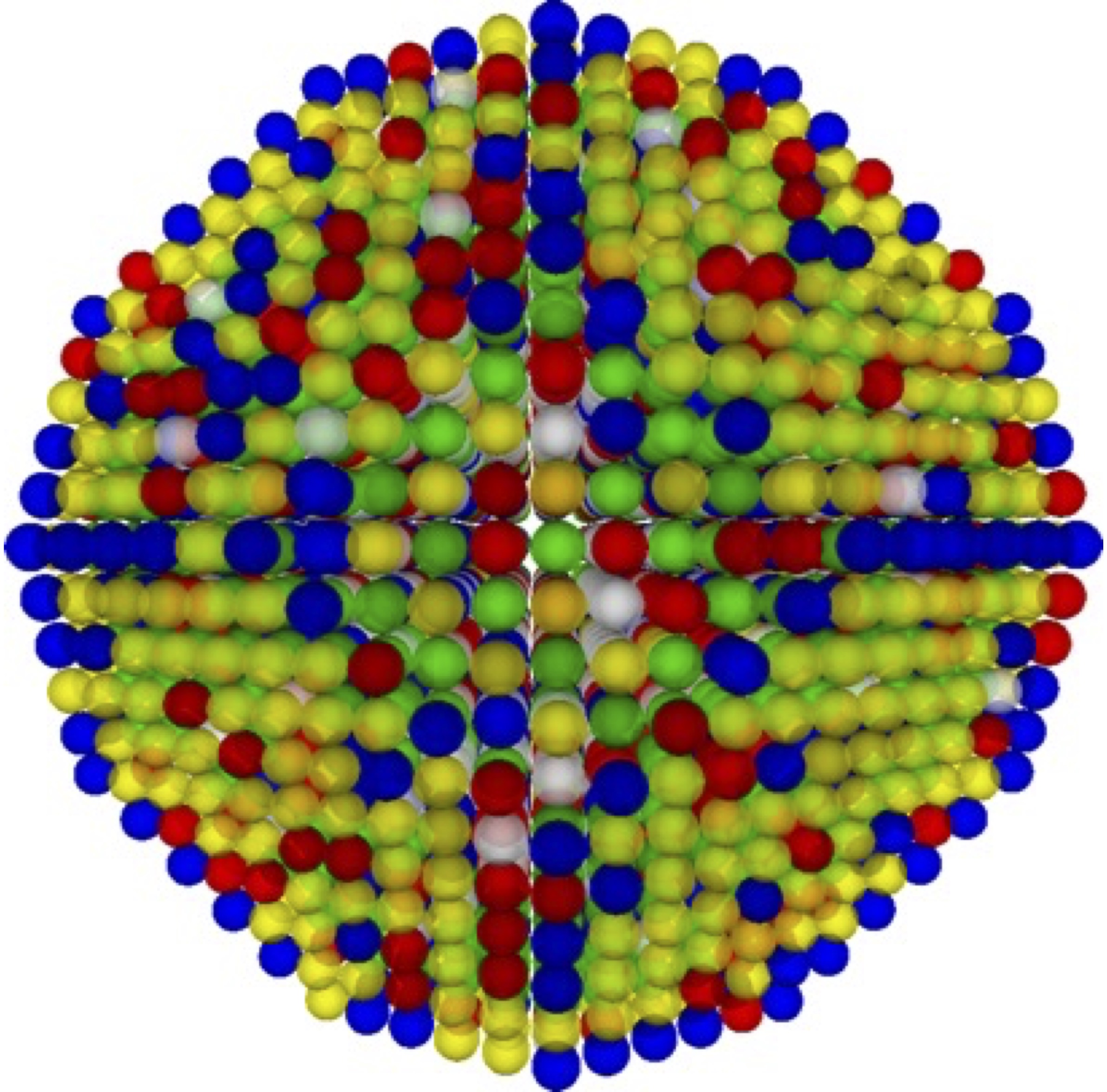 Theoretically, simple finite lattice approaches built on Ising or Potts models already provide a rough approximation to bi- or multimetallic nanoalloys with a good tendency for mixing such as gold-silver or palladium-platinum. However, these models do not capture local relaxation effects due to lattice mismatch and fail to represent finite temperature and plasticity effects. Atomistic off-lattice models, with continuous descriptions of the many-body effects at play in metals, can correct these flaws but are computationally more involved.